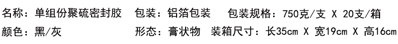 1.单组份聚硫密封胶为我公司自主研发的单组份室温硫化型聚硫密封胶,外观为黑色膏体,有较强的粘度。室温自然固化后与粘结物粘结牢固,有较好的弹性,表面平滑有光泽度。